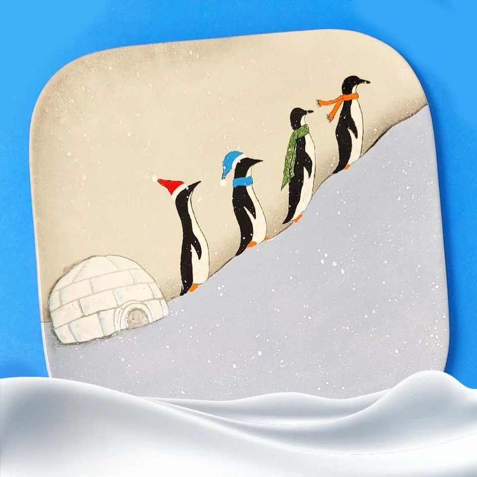 Get it the winter spirit with an instructional penguin plate painting class at Fired Arts Studio! This 15-inch rounded dinner platter is perfect for a freshly made batch of cookies in the kitchen! Call Fired Arts Studio to reserve your spot!