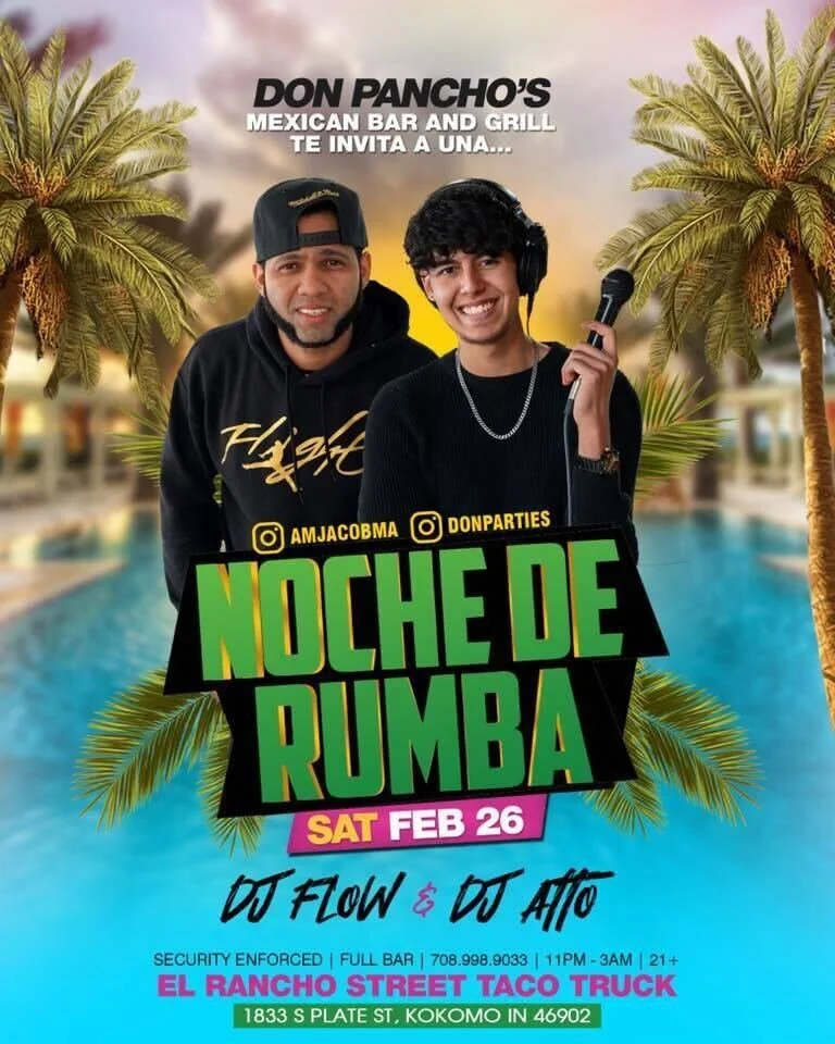 Get your dancing shoes on because Don Pancho’s is the place to be this Saturday night! Enjoy live DJs playing all of the Latin music you can ever imagine, a full bar, and an on-sight taco truck. Dress to impress for this unforgettable night in Kokomo!