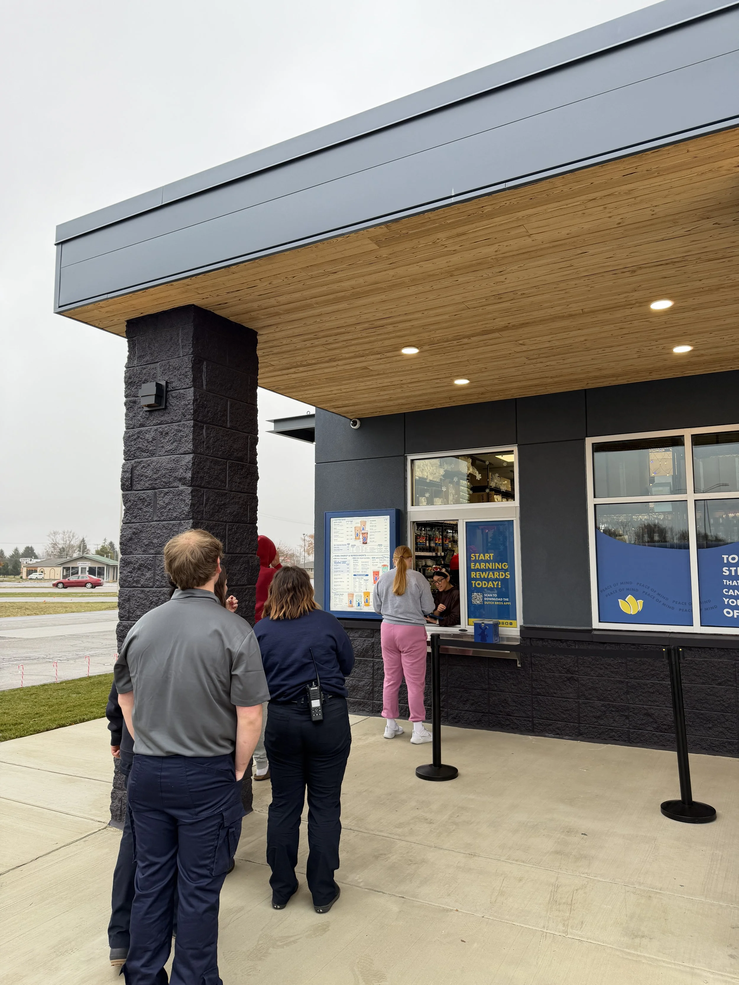 Dutch Bros gives you two ways to order. You can pull through the drive thru or walk right up to the window, which makes it feel almost like a little neighborhood hangout spot.