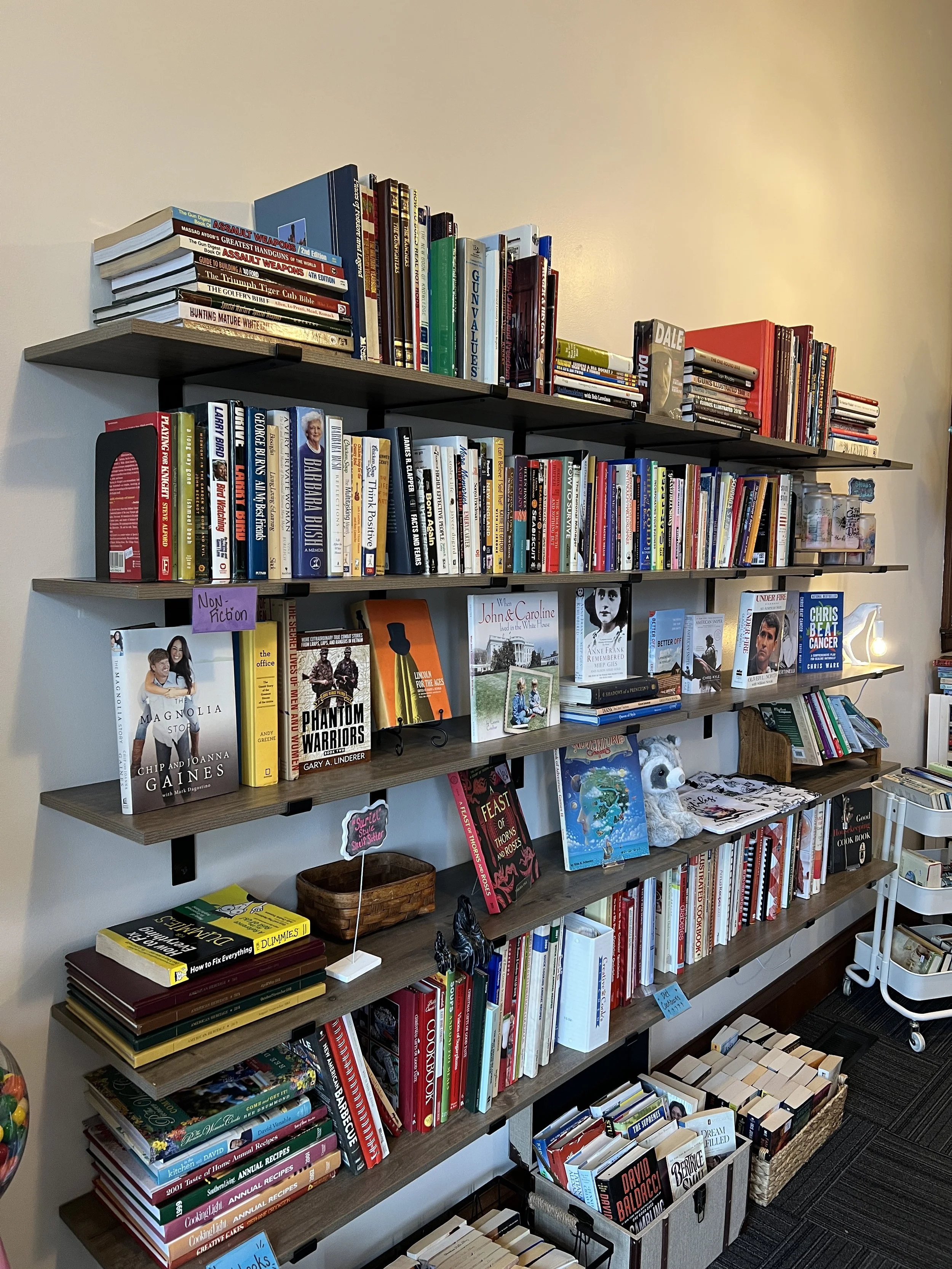 Every shelf is filled with books waiting to be rediscovered. You will find thrillers, memoirs, children’s stories, romance novels, self-help books, and even the occasional rare find that feels like a little treasure hunt. And the best part is that the selection is always changing, so each visit feels like a new adventure.