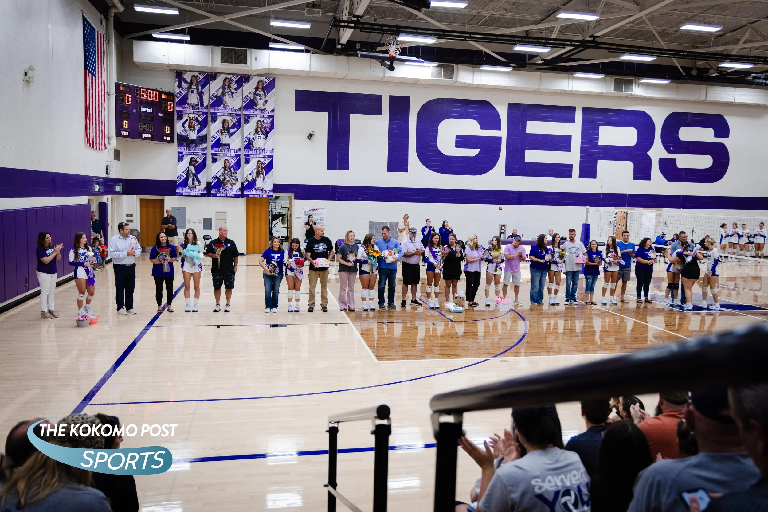 On Thursday night, the Northwestern High School Tigers took on the Whitko Wildcats on Northwestern’s Volleyball Senior Night. Playing steady and determined, both teams responded to one another taking one set each initially. After the Tigers took set three, the game looked like it was over. The Wildcats, behind more than 5 points in the last minutes of the fourth set, went on a tear, catching up to the Tigers to take the set. The Tigers were relentless and hungry to finish out the game with several recoveries and deep one-arm digs to take the last set, and the game.