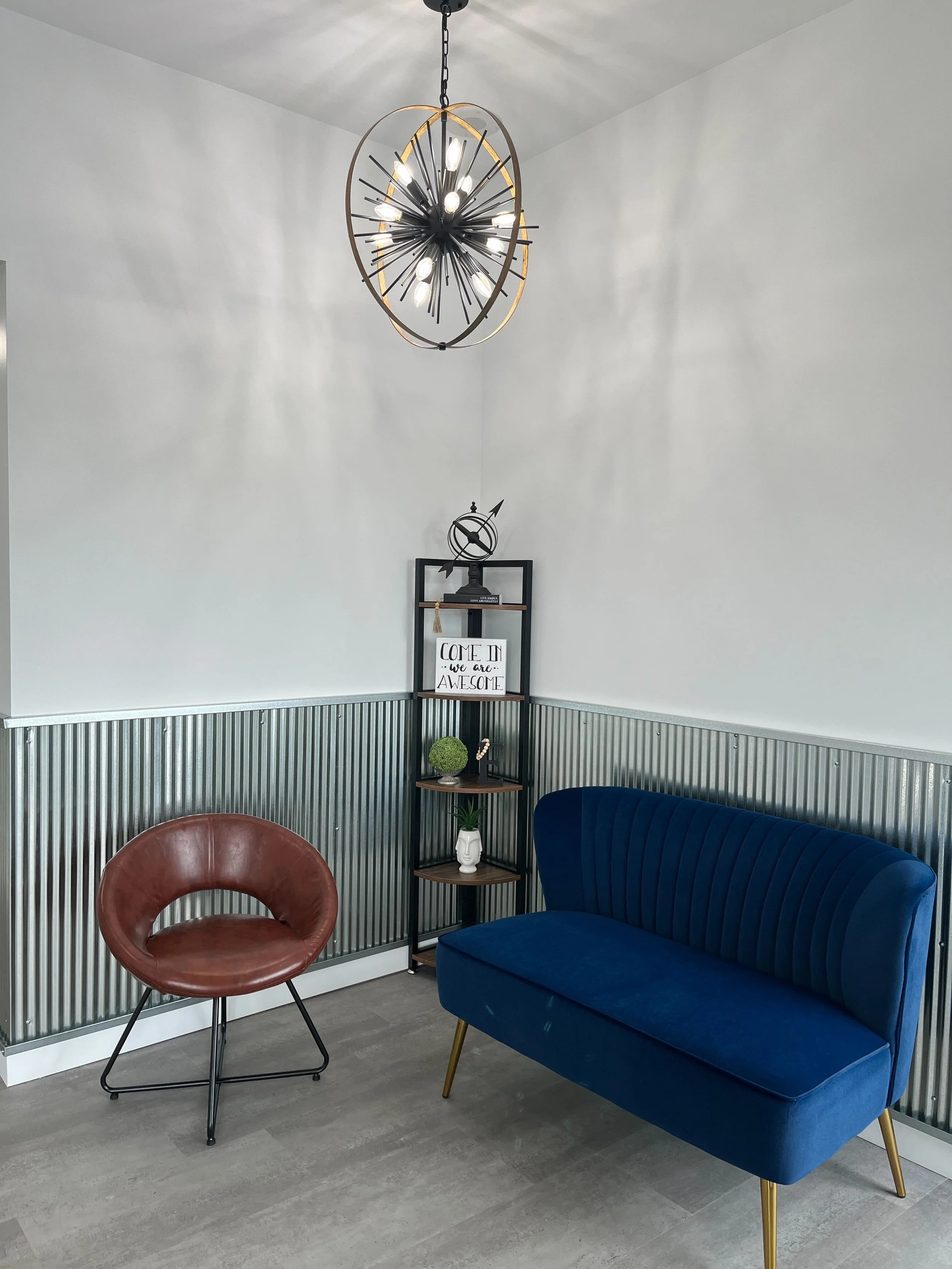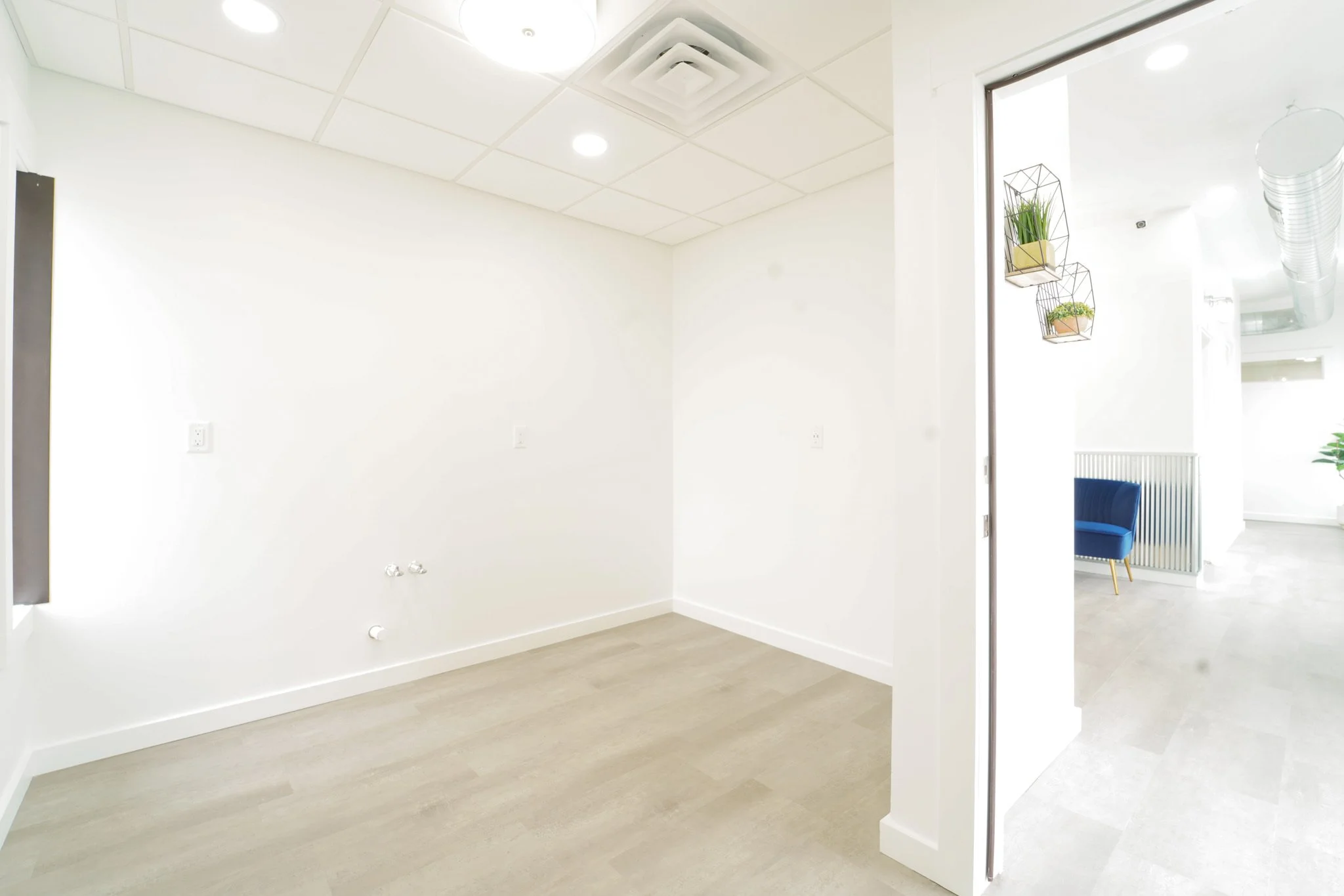 The entry to Elevate Suites is stunning with freshly painted white walls, new flooring and beautiful decor and light fixtures in the foyer welcoming guest into the space.