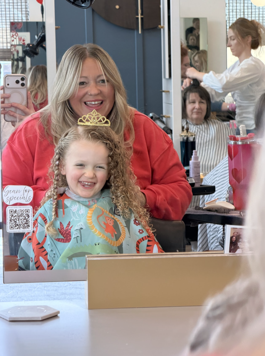 From there, she headed to the styling chair, where the real magic began. Her stylist, Tia, took her time making sure my little one felt comfortable and involved every step of the way. Tia styled her curls to perfection, shaping and defining them beautifully while my daughter watched herself in the mirror with the biggest smile.