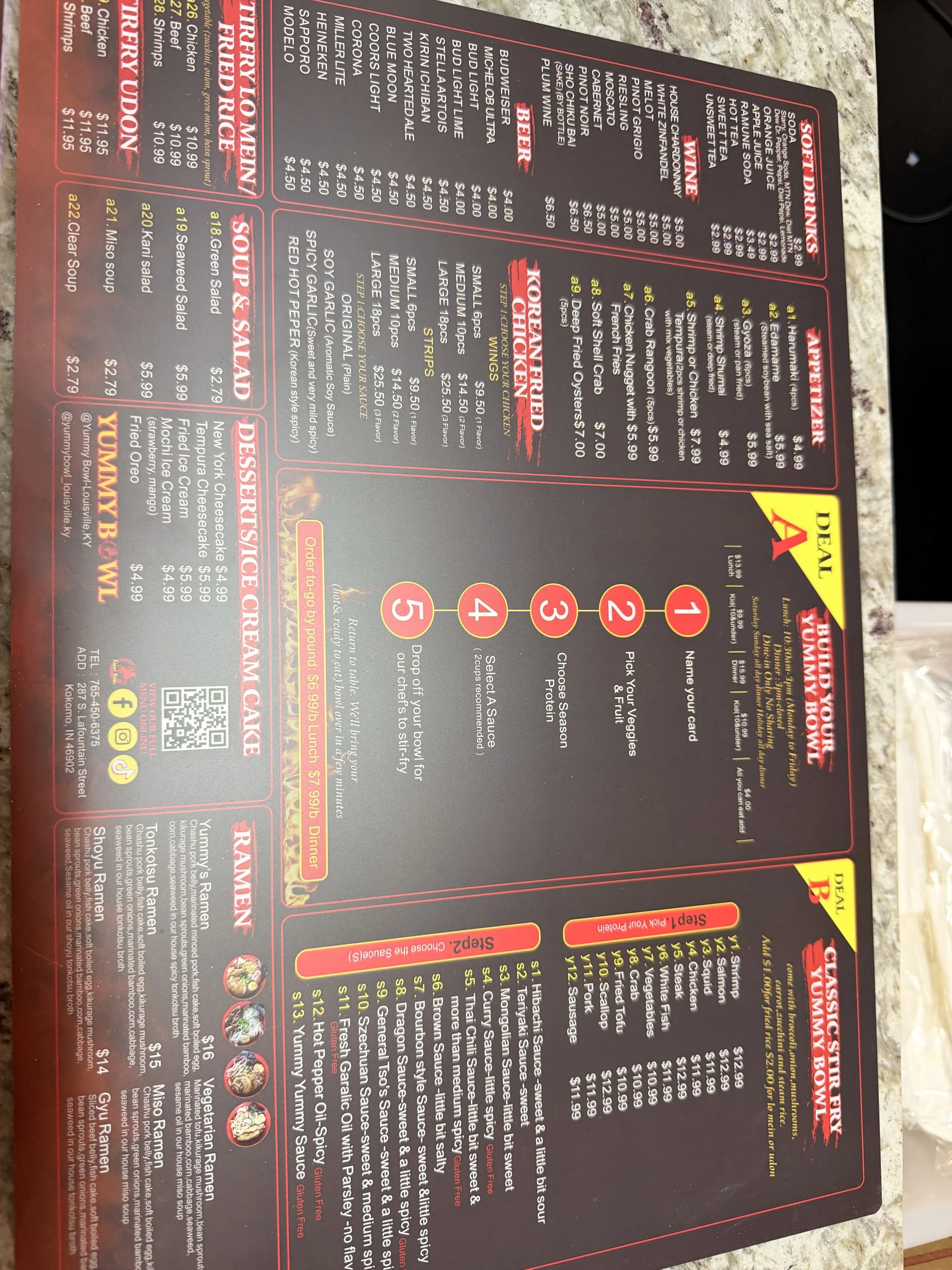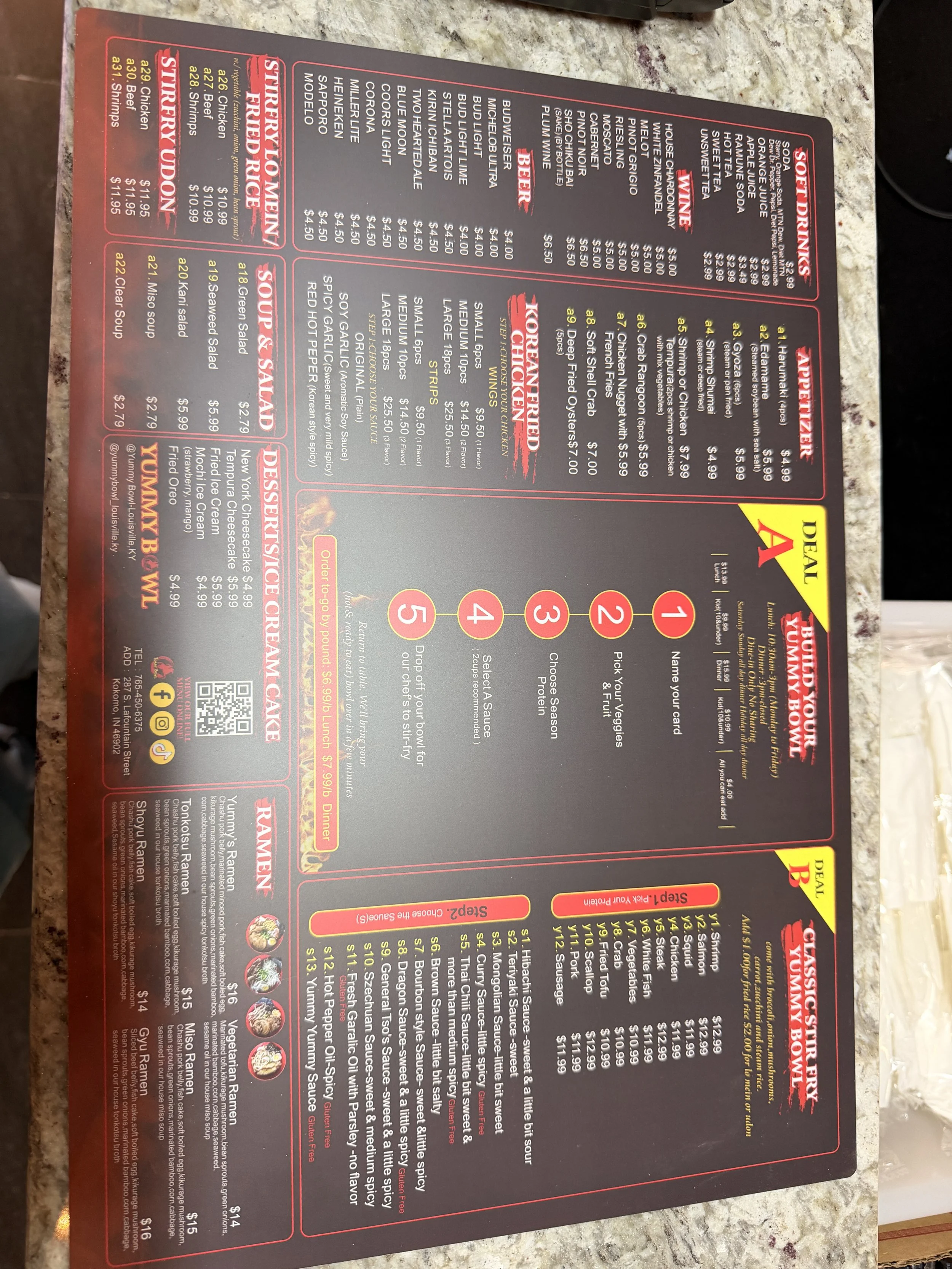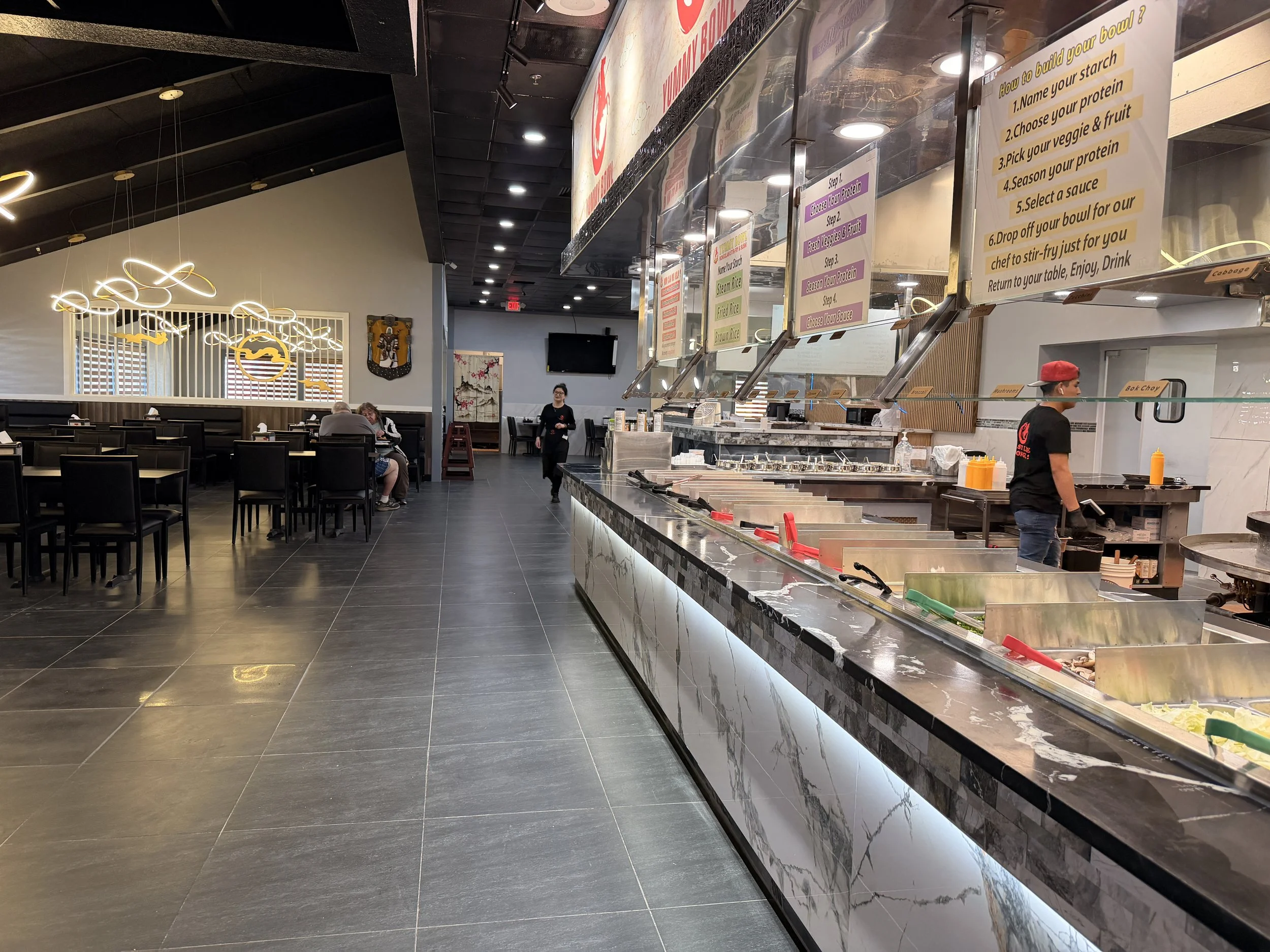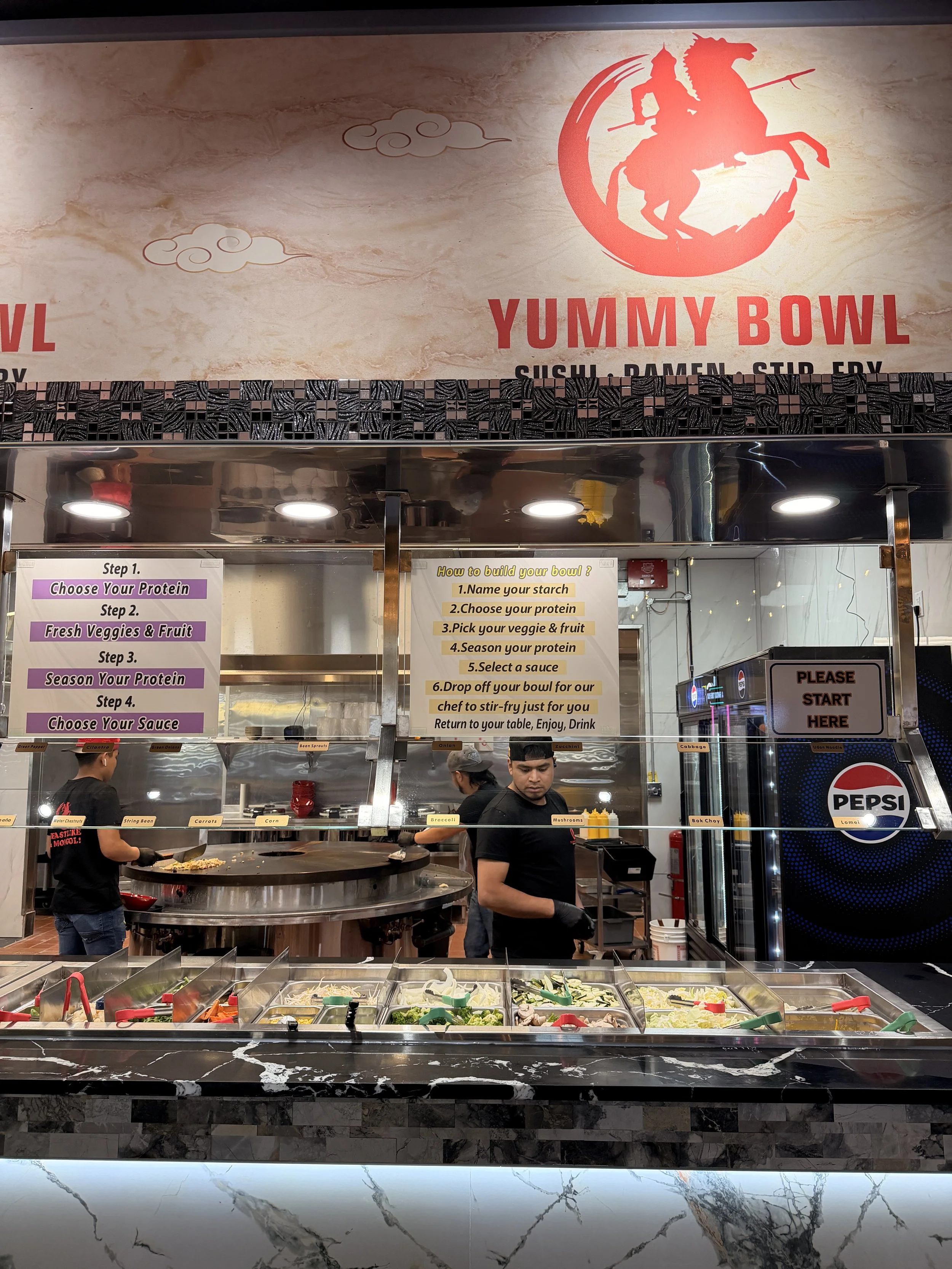 At Yummy Bowl, you’re in charge of your flavor adventure. Start by choosing your starch, whether that’s rice, noodles, or another base. Then pick your protein, with plenty of options like chicken, beef or seafood. Pile on fresh veggies, season your protein just the way you like it and finish things off with your favorite sauce. Once you’ve built your masterpiece, hand it over to the chef, who will stir-fry your creation right in front of you.