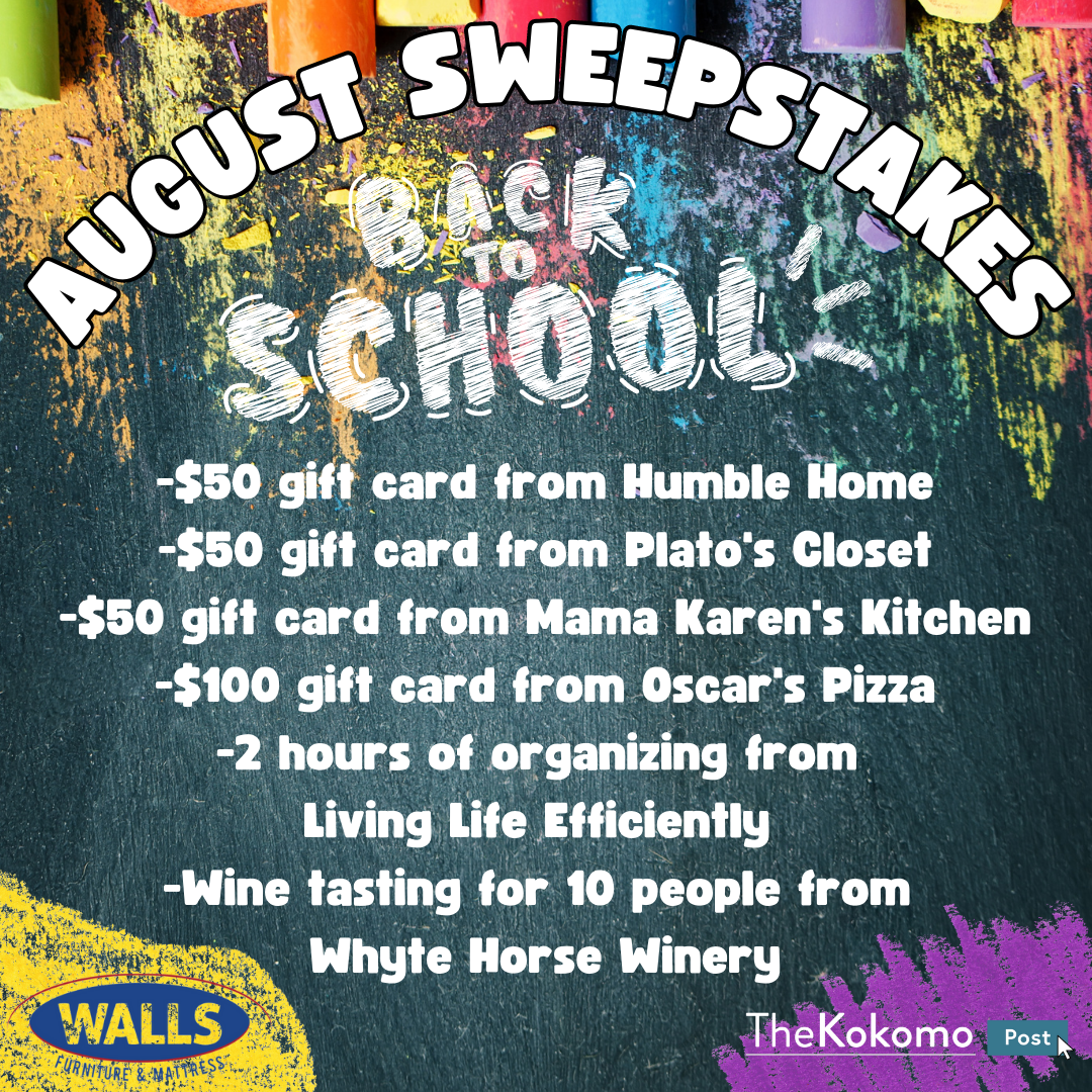 The contest runs from Aug. 1 through 11:59 p.m. Aug. 31, and the winner will be announced on Sept. 1. No purchase is necessary. Must be 21 or older to win. Staff and family of The Kokomo Post and Larison Media employees are not eligible to win. The Kokomo Post advertising partners are not eligible to win. Previous sweepstakes winners are not eligible to win in a single calendar year. Only one entry per person will be permitted. By entering the sweepstakes, you opt-in to marketing material from The Kokomo Post and our partners.