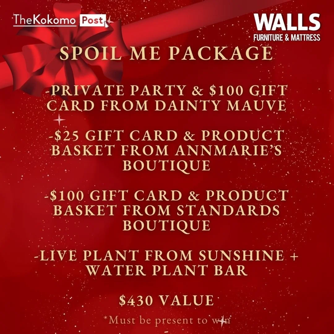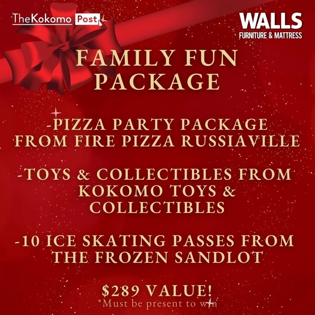 The contest runs from Dec. 1 through 20, and the winner of each prize package will be announced on a live broadcast on Dec. 20. No purchase is necessary. Must be 21 or older to win. Staff and family of The Kokomo Post and Larison Media employees are not eligible to win. The Kokomo Post advertising partners are not eligible to win. Previous sweepstakes winners are not eligible to win in a single calendar year. Only one entry per person will be permitted. By entering the sweepstakes, you opt-in to marketing material from The Kokomo Post and our partners.