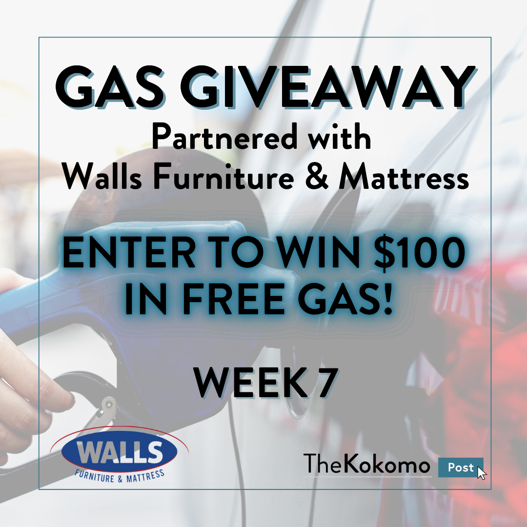 Welcome back to Week 7 of our summer gas giveaway! Gas prices are skyrocketing. But we’ve got your back this summer. The Kokomo Post and Walls Furniture And Mattress of Kokomo want to fill your tank for FREE! Enter for your chance to win a $100 gas gift card! Each week is a new chance to win. If you entered before, you are invited to enter again!