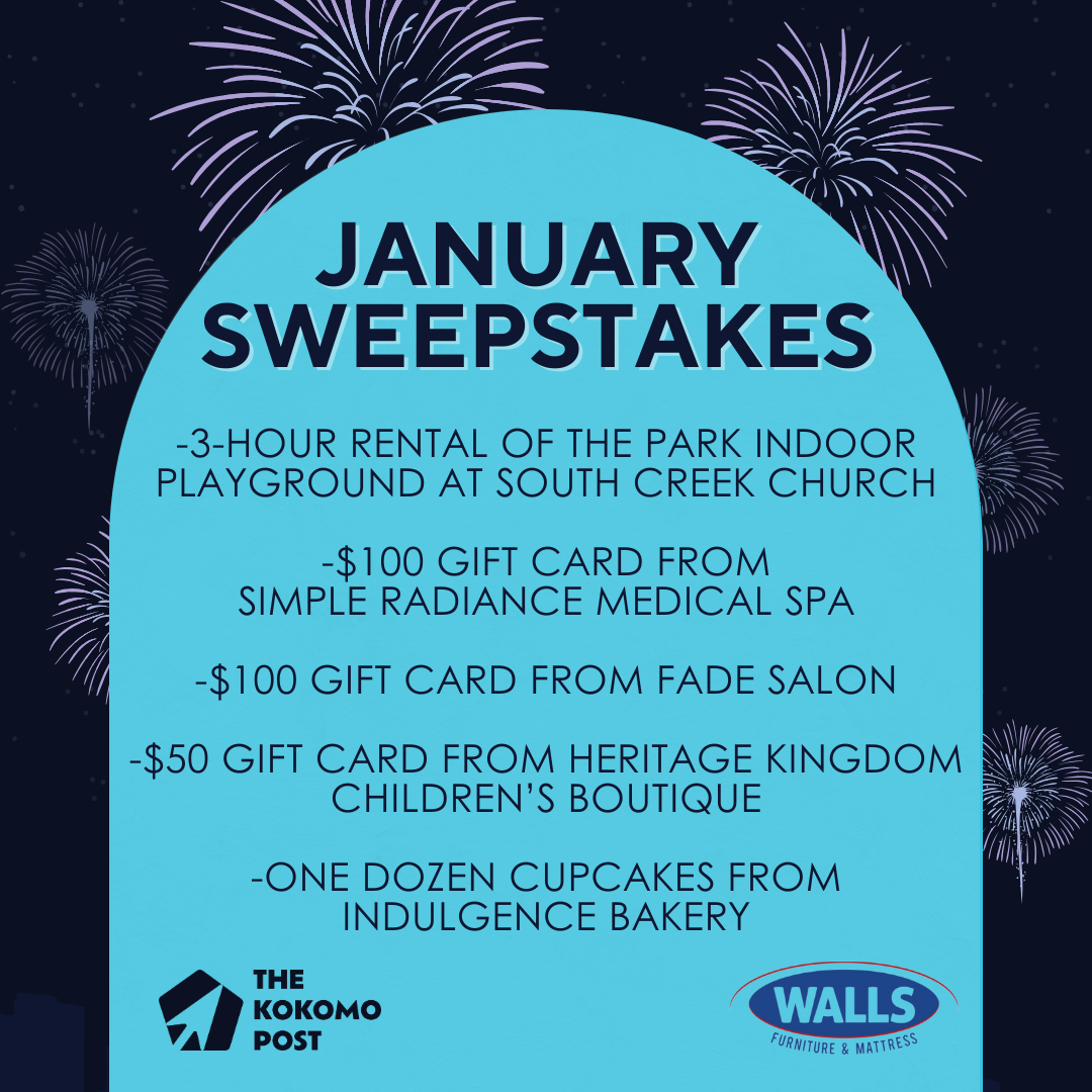 The contest runs from Jan. 1 through 11:59 p.m. Jan. 31, and the winner will be announced on Feb. 1. No purchase is necessary. Must be 18 or older to win. Staff and family of The Kokomo Post and Larison Media employees are not eligible to win. The Kokomo Post advertising partners are not eligible to win. Previous sweepstakes winners are not eligible to win in a single calendar year. Only one entry per person will be permitted. By entering the sweepstakes, you opt-in to marketing material from The Kokomo Post and our partners.