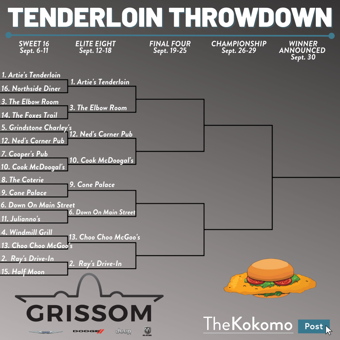 Place your vote below in the first round of the 2022 Kokomo Post Tenderloin Throwdown, partnered with Grissom Chrysler Dodge Jeep Ram, by clicking on your favorite tenderloin spot in each matchup! The second round runs from Sept. 12-18, and you may vote once per hour.
